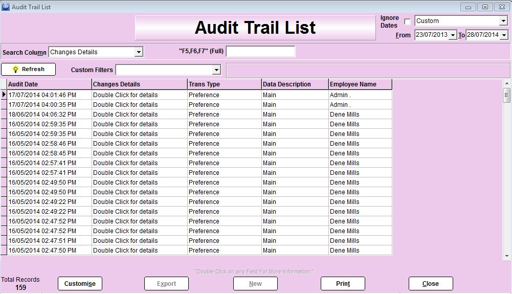 In business accounting software data integrity is key. The audit trail will track any, and all, changes made to True ERP, and report on (eg) who did them, when they did them and what they did. This gives you the ability to go back to any transaction and view any changes.