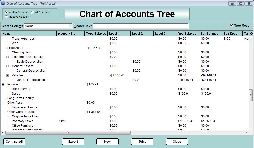The software comes with the complete list of accounts required for any business. This list can be added to, or deleted from, depending on your requirements. In addition, you can start from scratch with your own set of accounts, or simply merge together a combination of both.