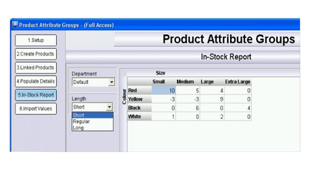Sometimes called a product matrix, the matrix system within the TrueERP Software suite will cater for not only "X" and "Y" grids, but also an additional "A","B" and "C" styled options or categories. ie you may have Size and Colour, but you can also have Garment Length, Cuff width, Collar Height and Sleeve Length etc as addition options or categories along side the traditional colour and size choice.