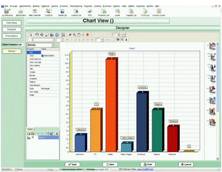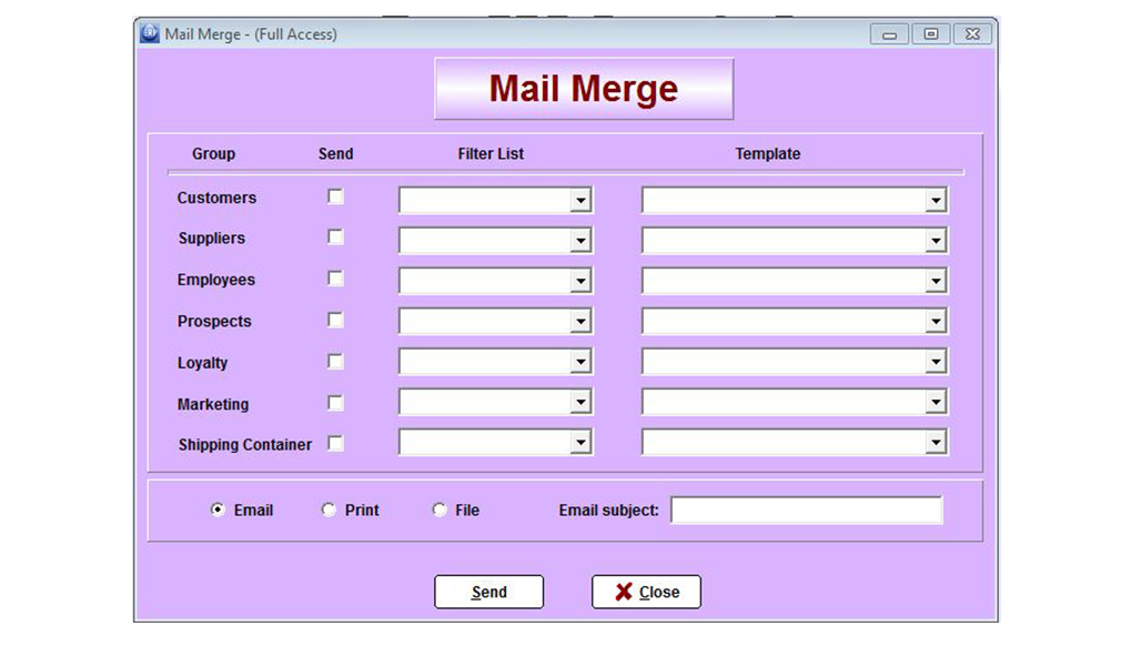 TrueERP has the facility to send mail merge documents to prospects, leads and customers based on nearly infinite selections. With our built in email and fax engines, the sending of documents takes seconds, not hours. An extremely powerful marketing tool!