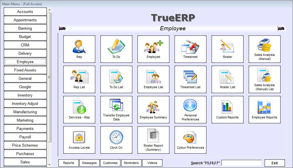 TrueERP is sold complete with every function, included in every package. When you use TrueERP, you have the incredible benefit of having access to every module that is in TrueERP, quickly and easily at your fingertips. By doing this, TrueERP ensures that every module is fully integrated; any data changes and additions to any module will immediately impact on any and every other module within TrueERP.