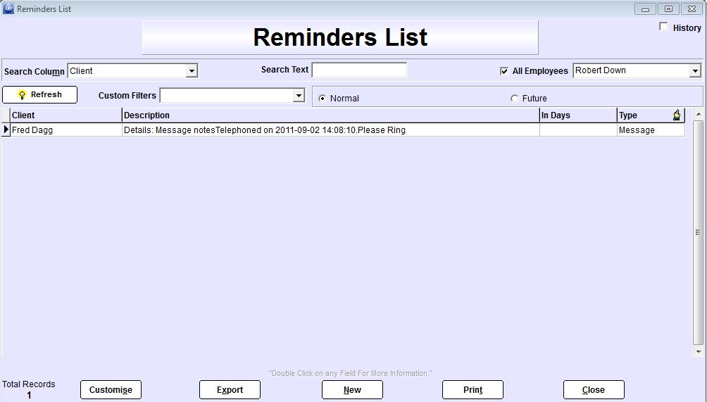 As with the To Do List, when the staff are logging on to their system, a screen will pop up to remind them to complete these tasks or prompt them that they have appointments, quotes to finish, or follow-up calls to make etc. A great tool for ensuring that even the simplest thing that keeps getting overlooked is completed, efficiently and on time. There is a huge range of reminders and prompts that can be turned on or off as each staff member sees fit, enabling them to customise.