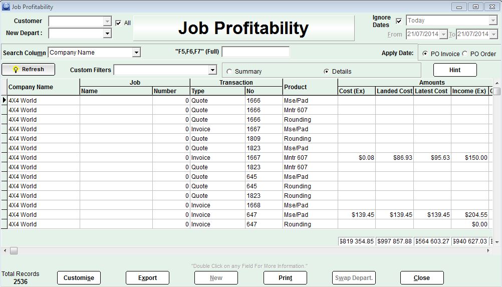 Instant Job Profitability and Traceability. An extensive and complete history of every quote, sales order, invoice, cash sale,