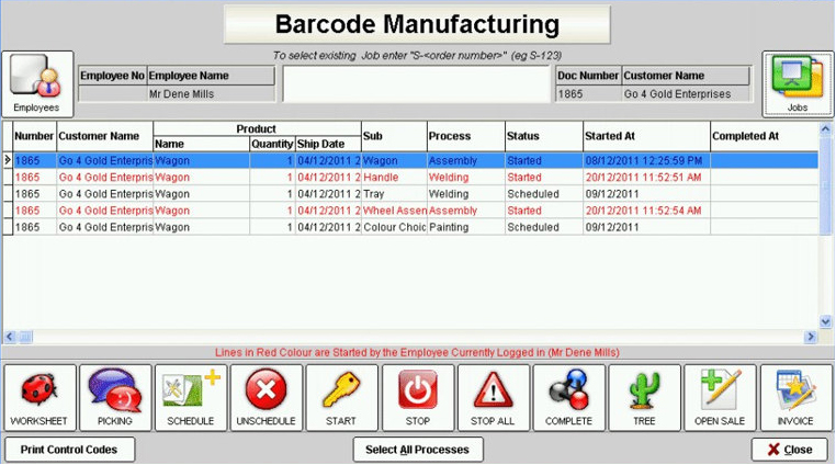 By scanning in their employee barcodes, the next prioritised job is put through production, which in turn then produces a picking slip.
