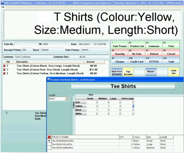 Complete set-up as required to buy and sell using matrix products with an unlimited number of extendable "X" and "Y" grids. i.e. sell shirts by colour, size and sleeve length.