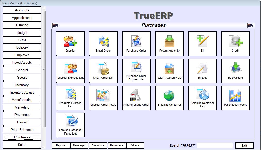 TrueERP gives you complete control of your purchasing and supply chain management. From automatic reorder triggers to auto selecting the cheapest supplier and tracking orders from shipping to stocking your shelves, TrueERP is the answer.