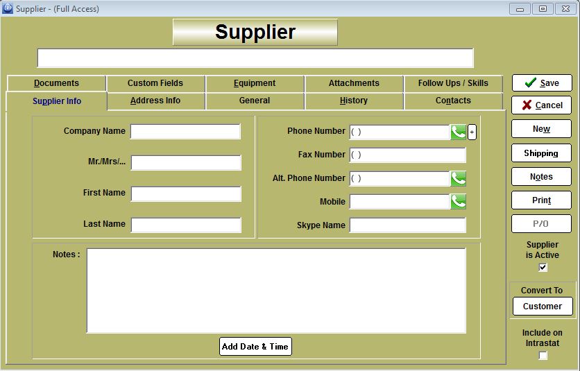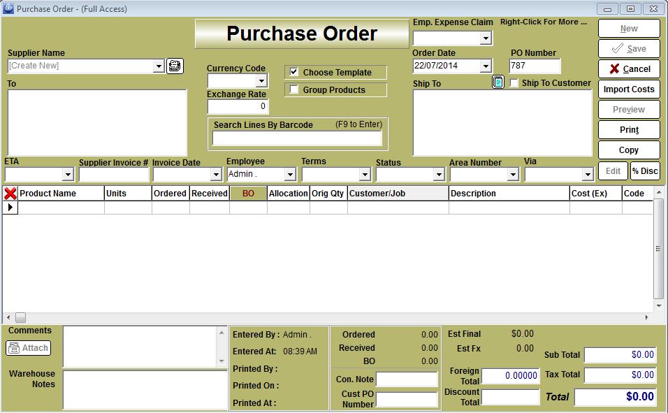 Can be faxed, emailed or printed in multiple formats, all from the Purchase Order screen, The receipt of goods and the reconciliation of amount of invoice is all on the one form.