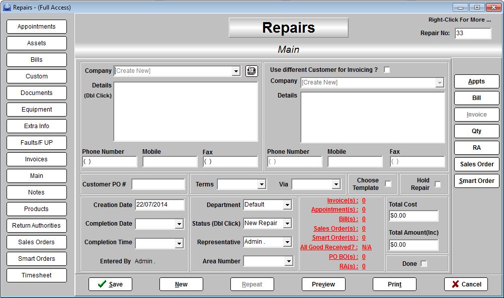 Serial number tracking is active on all repairs allowing you to track full history on repaired items and warranty periods on any item.