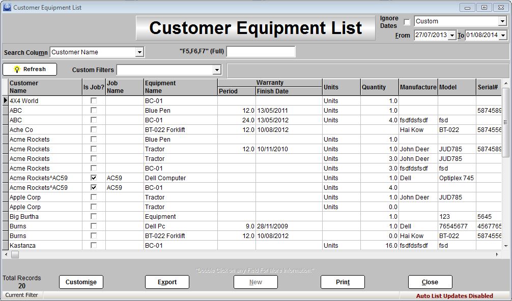 TrueERP allows you to service customer equipment and invoice the third party company responsible for the warranty giving complete control over servicing costs.